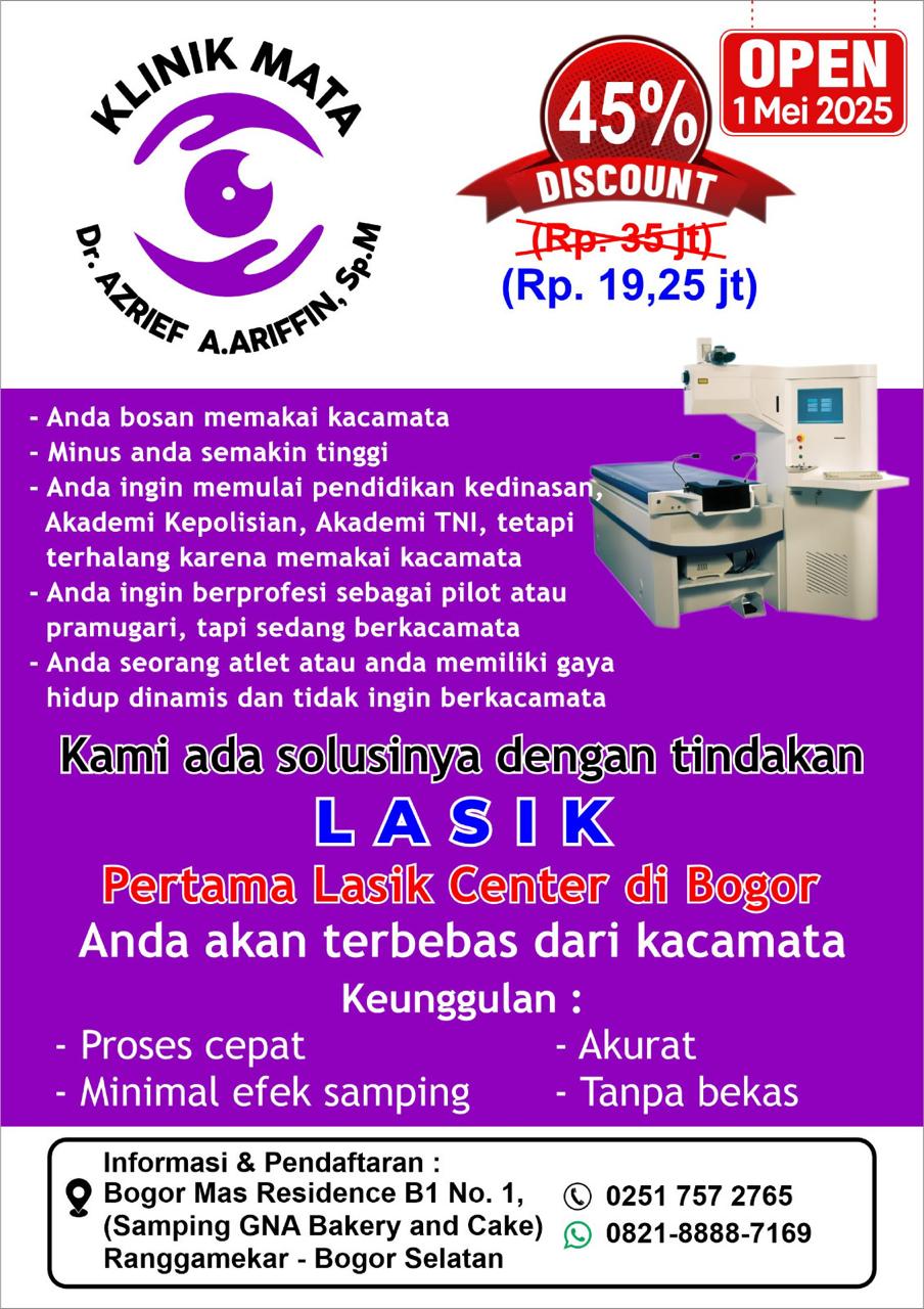 Lasik Mata adalah solusi inovatif untuk memperbaiki penglihatan Anda tanpa perlu menggunakan kacamata atau lensa kontak. Dengan teknologi canggih dan prosedur yang aman, Lasik mata dapat membantu Anda melihat dunia dengan lebih jelas dan tajam.